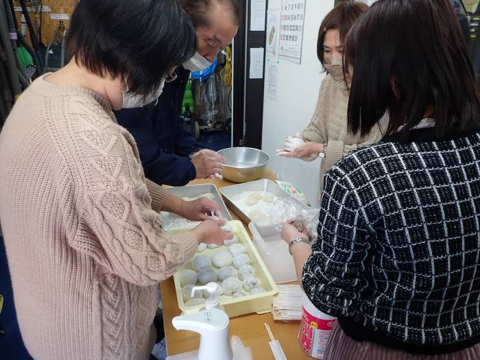 ついた餅は皆で調理しました
